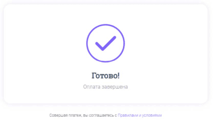 После подтверждения платежной системой получения денежных средств, Вы увидите успешный статус операции.