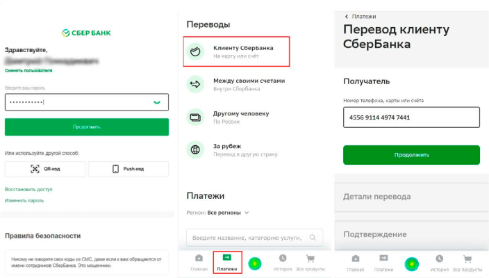Копируем номер карты, переходим в приложение своего банка, и совершаем перевод указанной суммы на полученные реквизиты, используя функционал «перевод по номеру карты/телефона».